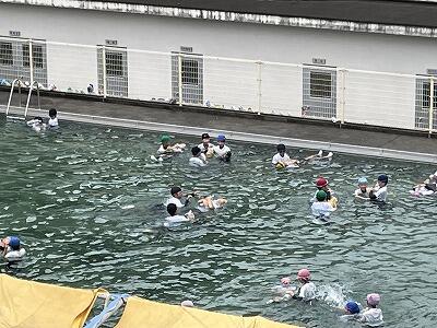 7月10日(水)各学年のプールでの授業も今週で終わりです。2校時、4年生は着衣泳に取り組んでいました。体操服を着て体育館シューズを履いて、プールに入ります。ペットボトルを抱えながら、体を浮かせる練習をしていました。とても難しいそうでしたが、いざという時に今日の学んだことが役立てられるといいです。