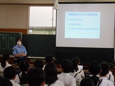 7月16日(火)3校時、6年生は多目的ホールで「非行防止教室」行いました。日向警察署から講師の方をお招きしてメディア利用における「ゲームのトラブル」「SNSのトラブル」「コミュニケーションアプリのトラブル」について具体的な例をもとにくわしく教えていただきました。「インターネットは便利な道具、でも人生を豊かにしてくれるかそうでないかは自分しだい」という言葉をしっかりと心に刻んでほしいと思います。