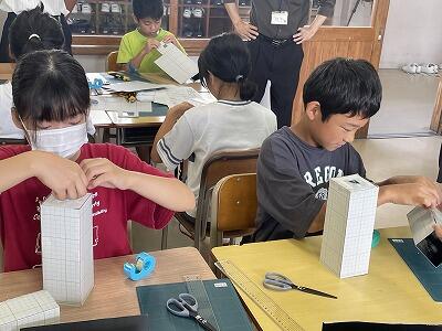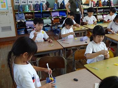 夏休みに入って1週間が過ぎました。7月27日(土)科学不思議体験『実験・観察教室』が行われました。午前中は『実験教室』で会場は日向工業高校、本校からは4年生8名と5年生2名が参加してくれました。4年生は「忍者バルーンスライム」づくりと液体窒素を使っての「コールドワールド」、5年生は「ピンホールカメラ」と「電気ペン」づくりに取り組みました。高校の先生方の指導や高校生のサポートで楽しく取り組むことができました。午後からは『観察教室』で、奥野河川プールで水生生物探しに取り組みました。こちらには本校からは4年生1名の参加でしたが、川底の石を裏返したりあみを使ったりしながらいろいろな水生生物を捕まえて調べることができました。参加してくれた児童のみなさん、送迎にご協力いただいた保護者の方、ありがとうございました。