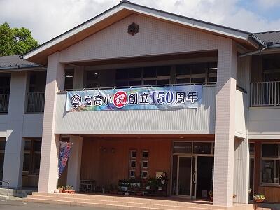 にっこり「 富高小創立150周年」横断幕もでき上がりました!