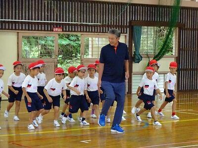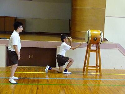 9月12日(水)2校時、1年生は体育館で運動会の練習に取り組んでいました。ひょっとこ夏祭りの"てんてこてん"でもお世話になった地域の方を先生にお招きして、ひょっとこ踊りを教えていただきました。最初はぎこちなかった足の運びも、終わり頃には音楽に乗って上手にできるようになりました。このひょっとこ踊りで運動会での1年生の出番がまた盛り上がりそうです。