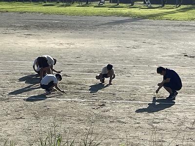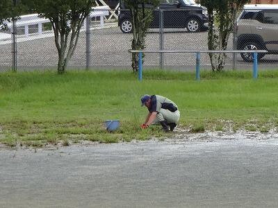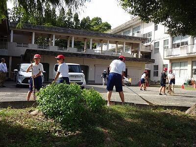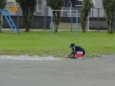 来週から全校体育も行われます。この変則的な天気の蒸し暑さの中、運動場では一部に雑草が伸びたグラウンドを技術員さんが連日、整備作業を進めてくれています。