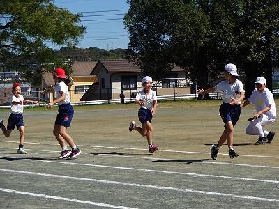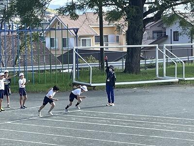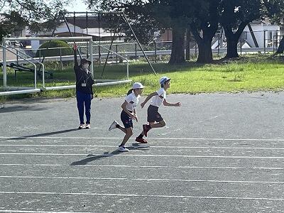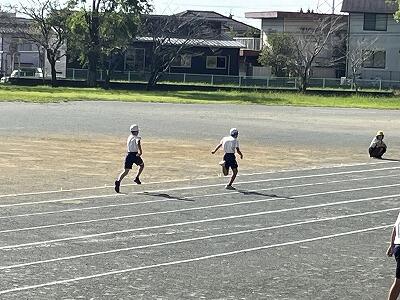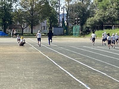 9月24日(火)先週に引き続き、3連休明けの火曜日です。1校時、5年生は運動会に向けて短距離走のタイムチャレンジをしていました。最後まで力を抜かずに一生懸命走っている姿がすばらしかったです。最後の組では先生もいっしょにゴールを駆け抜けました。