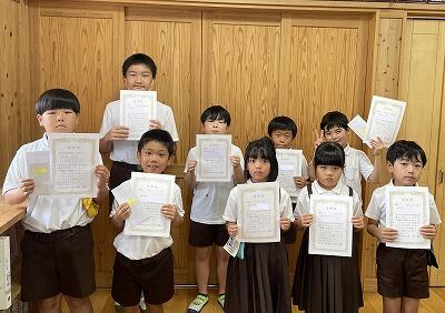 8月31日に行われた「第40回宮崎県小学生バドミントン選手権大会」の「4年生以下男子シングルスの部」において本校4年生児童が第1位という優秀な成績を収めました。おめでとうございます。この後、九州大会にも出場するそうで、活躍を楽しみにしています。今回も友だちといっしょに校長室に報告に来てくれました。