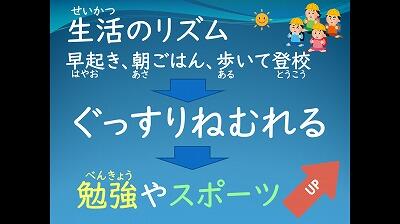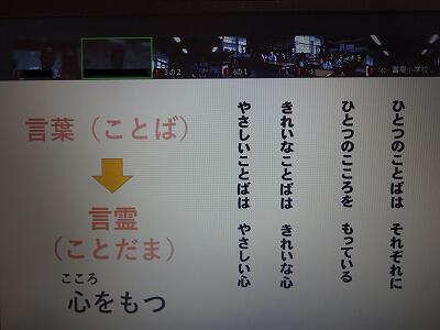 10月3日(木)昼休み後の時間、10月のオンライン全校集会を行いました。まず、校長から9月17日学校保健委員会でお話があった「睡眠の大切さ」について伝えました。「しっかりぐっすり眠ることが勉強やスポーツができるようになることにつながること」「しっかりぐっすり眠るために寝スマホはやめて生活のリズムを整えること」を話しました。そのあと担当から10月の生活目標「優しい言葉を使います」について話がありました。優しい言葉がいっぱいの富高小を目指します。