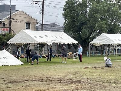 10月18日(金)6校時、運動会準備作業を行いました。朝は雨が降り、お昼前から日射しがさしてくる蒸し暑い天気の中、5・6年生が積極的に動いてそれぞれ任された役割を果たしてくれました。PTAの方にもお手伝いいただき、職員も総出で本日できる準備をしました。あとは20日運動会当日がお天気になることを祈りたいと思います。