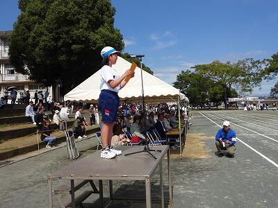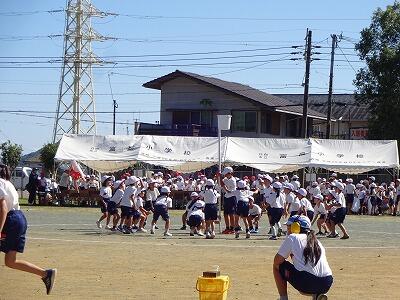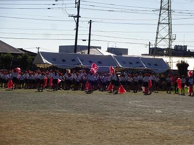 10月9日(水)1~4校時、運動会予行練習を行いました。少し強い風がふいていましたが、秋晴れの気持ちのいいお天気、子どもたちは元気いっぱい体を動かしていました。開・閉会式の内容を確認したり、各プログラムは入退場を中心にリハーサルをしたりしました。どの団もリーダーを中心にてきぱきと動き、応援の声も運動場に響き渡っていました。残り11日、各学年、もっといいものに仕上げてていってくれることと思います。
