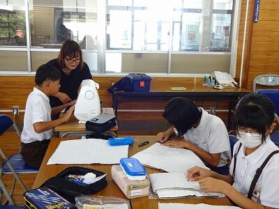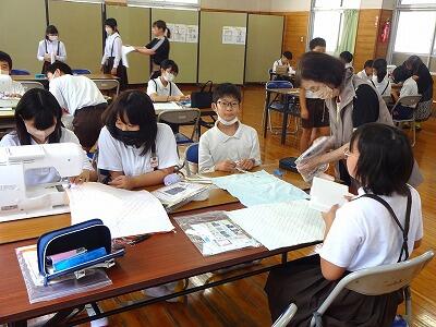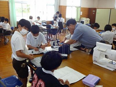 10月11日(金)1~3校時、6年3組が家庭科で「ナップザック・トートバッグづくり」に取り組んでいました。ミシンを使って作成するということで「ミシンショップ日向」さんにご協力いただき、5名の方をお招きしてサポートしていただきました。"日向の大人はみな子供たちの先生”、おかげでミシンを使いながらの学習活動がスムーズに進みました。本当にありがたいことです。