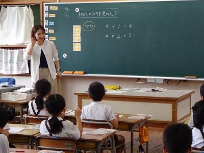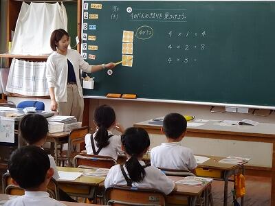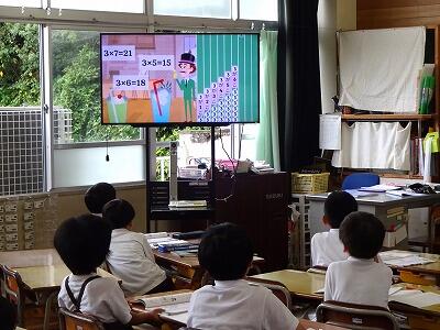 10月17日(木)3校時に2年1組・2組、4校時に2年3組が算数でかけ算の学習に取り組んでいました。今日は4のだんの九九にチャレンジ。5のだんから2、3のだんと来て覚えることが増えてきていますが、まだ折り返し地点。動画を見たり、リズムに乗って歌ったりしながら九九を唱える練習をがんばっています。ご家庭でもいろんな機会に子どもたちのかけ算九九チャレンジにお付き合いいただけるとありがたいです。