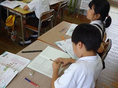 9月11日(水)朝は雨がパラつき、時折、強い雨も降りましたが、昼前から日が射してきてとても蒸し暑い1日になりました。もうしばらくは、この暑さへの警戒が必要なようです。今日は6年生が1校時、体育館で表現の練習に取り組んでいました。難しい動きだけに、6年生の表情も真剣そのものでした。2校時、1年生は国語でかたかなの学習に取り組んでいました。ひらがな、漢字、かたかな・・覚えることがいっぱいの1年生ですが、しっかりがんばってます。