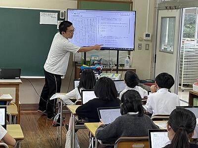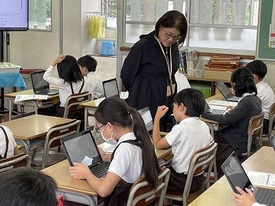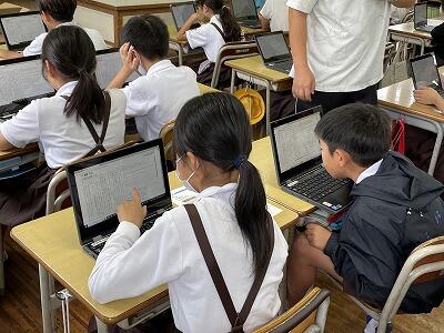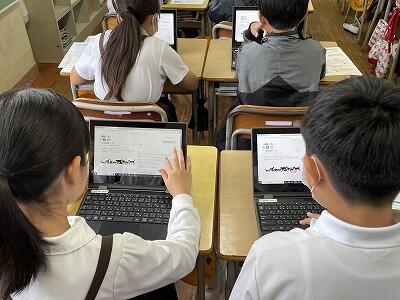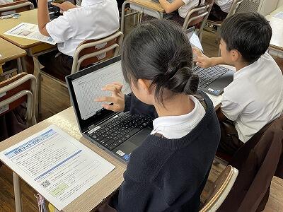 10月25日(金)1校時、4年1組では子どもたちがタブレットを使っていました。12月実施予定の「みやざき学力状況調査」は本年度、調査サイトでの実施となり、子どもたちはタブレット入力で問題を解いていかなければなりません。本日はその方法について、4年担任が協力して指導を行いました。4校時には2組でも行いました。子どもたちはみんな熱心に取り組んでいました。