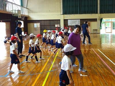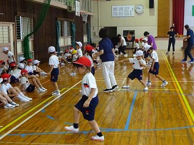 2・3校時、1年生は地域の方から「ひょっとこ踊り」を教えていただきました。まずは足の運びから練習し、音楽をかけて全体の動きも覚えながら、あっという間に上手になりました。指導者の方からもおほめの言葉をいただきました。この練習が夏の「てんてこてん」や秋の運動会につながっていきます。