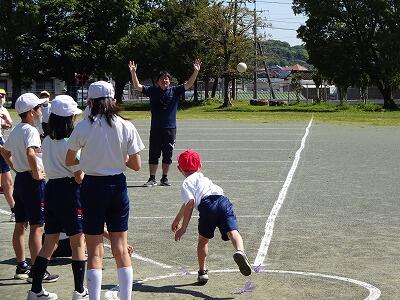 5月9日(木)2・3校時、今日は1・2年生の体力テストチャレンジを1年生は6年生が、2年生は5年生がサポートしてくれました。いっしょに走ってペースを作ってくれたり、お手本を見せてくれたり、記録を測定したり、種目ごとに案内したりと、5・6年生大活躍でした。それに応えて、1・2年生も一生懸命がんばっていました。