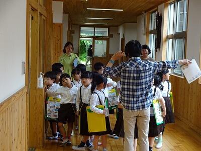5月15日(水)3・4校時、1年生は生活科の学習で各クラスごとに「学校たんけん」をしていました。担任の先生の説明を聞きながら、校舎内の各教室の様子を見て回ったり校庭や運動場を歩いたりしながら、いろいろなものを見付けていました。