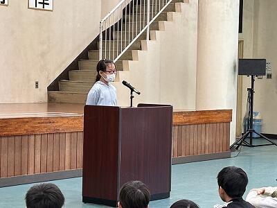 その後、担当の先生から5月の生活目標である「昼休みは外で元気よく遊びます」について、外遊びのよさや約束・ルールについての話がありました。来週は天気がよさそうなので、外で元気よく体を動かしてくれたらと思います。