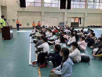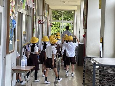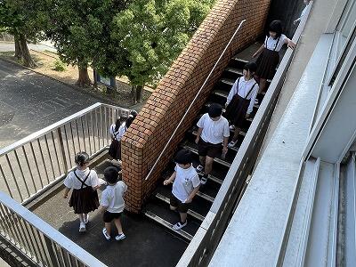 5月21日(火)3校時、全校で不審者が侵入した時の避難訓練を行いました。通報カードシステムについてや放送の内容、教室での動き方を確認した後、運動場までの避難経路について実際に移動しながら確かめました。命と安全を守る行動の仕方について、今後もいろいろな場面で意識を高めていきたいと思います。
