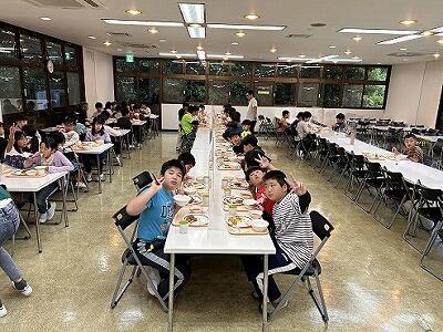 お風呂から上がって、夕食の時間です。みんな、もりもり食べています。