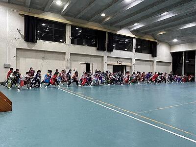 学校を出発し、青少年自然の家に到着しました。風がとても強いです。プレイホールで「はじめのつどい」を行いました。このあと、いよいよむかばき山登山に出発です。