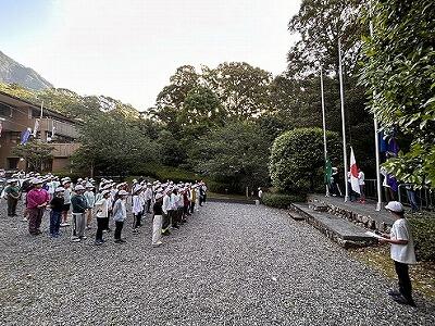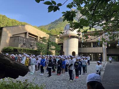 5月17日(金)むかばき宿泊学習2日目です。今日もいいお天気です。午前6時起床、午前7時「朝のつどい」に参加しました。