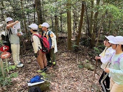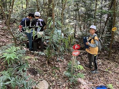 午前9時から「追跡ハイキング」スタートです。グループに分かれて、自然の家周辺を散策しながら、問題を解いたり指示にしたがって活動したりにチャレンジです。
