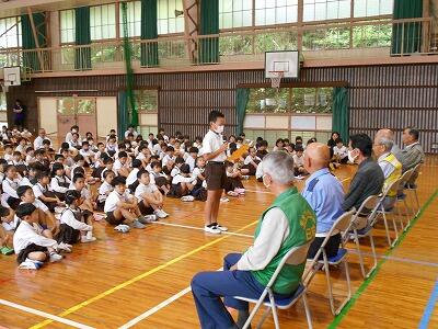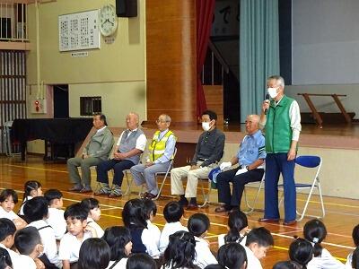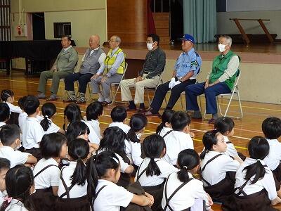 5月22日(水)1校時、通学路の横断歩道や交差点で登校の様子を見守ってくださっている各地区の安全監視員の方との対面式を行いました。本日は6名の方にご来校いただき、自己紹介や子どもたちへの願いをお話ししていただきました。6年生の代表からは、日頃の感謝の言葉を述べました。毎日、朝早くから子どもたちの安全を見守ってくださって本当にありがたいです。今後ともよろしくお願いします。