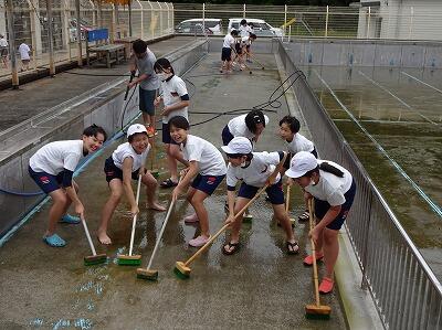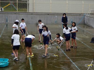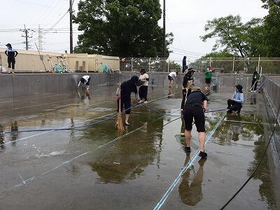 プールそうじをしました