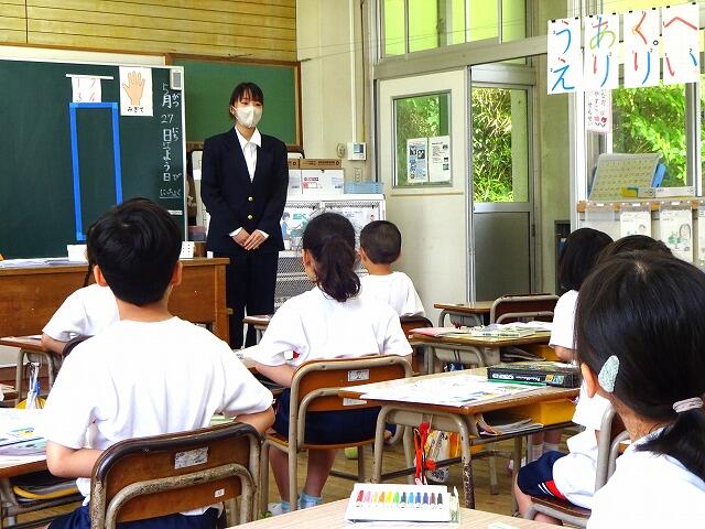 5月27日(月)蒸し暑い1日でした。本日より養護教諭の教育実習が始まりました。実習生は本校の卒業生でもあり、2校時には交流する1年1組の子どもたちにあいさつをしてくれました。これから6月14日(金)までの3週間、保健室を中心に養護教諭の業務について学びます。よろしくお願いします。
