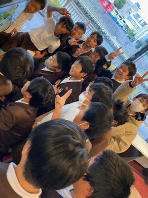 修学旅行1日目 鹿児島は予報で見ると寒いようです。みんなの写真を見るととても元気で寒さも吹き飛ばしているようですね。