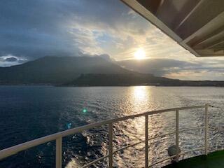 桜島で朝食を食べ、フェリーに乗って出発しています。