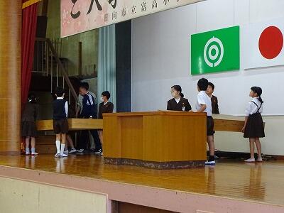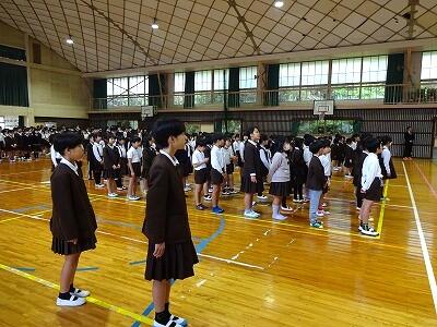 4月19日(金)3校時、全校集会を行いました。1年生から6年生までの全校児童が体育館に集まり、担当の先生から富高小のきまりやきまりを守ることの意味、大切さについての話を聞きました。また、相手を思いやる心について、地域の方から教えていただいた本校児童のやさしさあふれる行動についての紹介がありました。