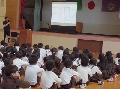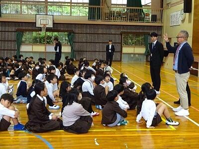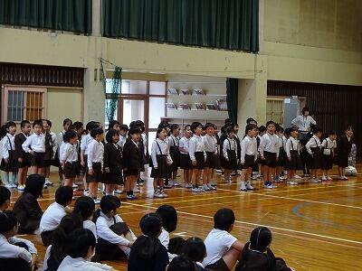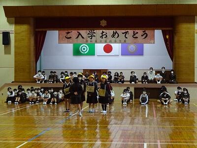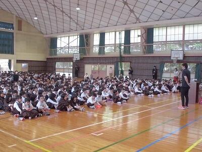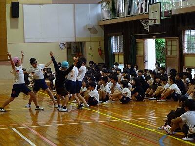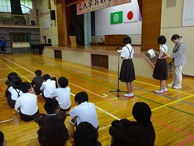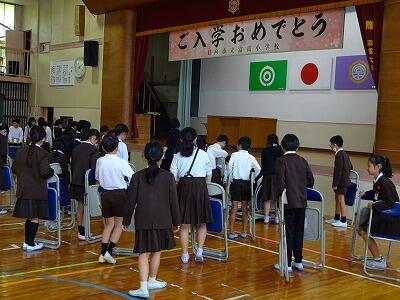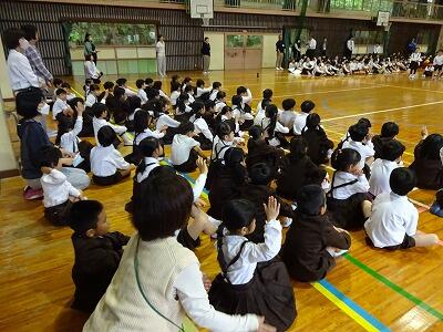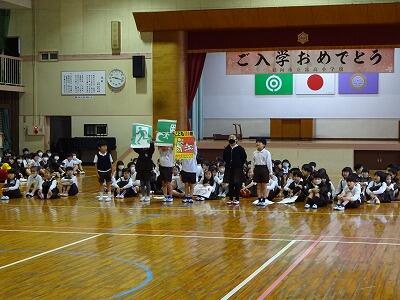 4月26日(金)2校時、1年生の歓迎集会を体育館で行いました。まずは2年生から6年生が学校のいろいろなことについて、歌やジェスチュアを交えながら楽しく教えてくれました。各学年のアイデアあふれる発表に1年生も大喜びでした。最後の1年生全員によるお礼の言葉もとてもすばらしかったです。これからも、全校児童が教え合い助け合いながら、仲良く楽しく過ごしてほしいと思います。