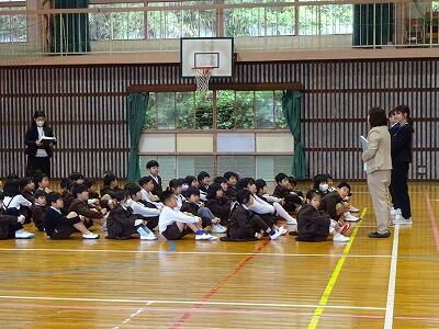 4月25日(木)2校時、本年度第1回目の地区別集会を行いました。地区ごとに各教室や体育館に集まり、登校班のメンバーや並び方を確認したり、地区の危ない場所や交通安全のきまりについて話し合ったりしました。同じ地区に住んでいる違う学年の友だちのことを知り、つながることはとても大切なことです。これからもお互いに声を掛け合いながら、安全に集団登校してほしいと思います。