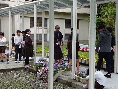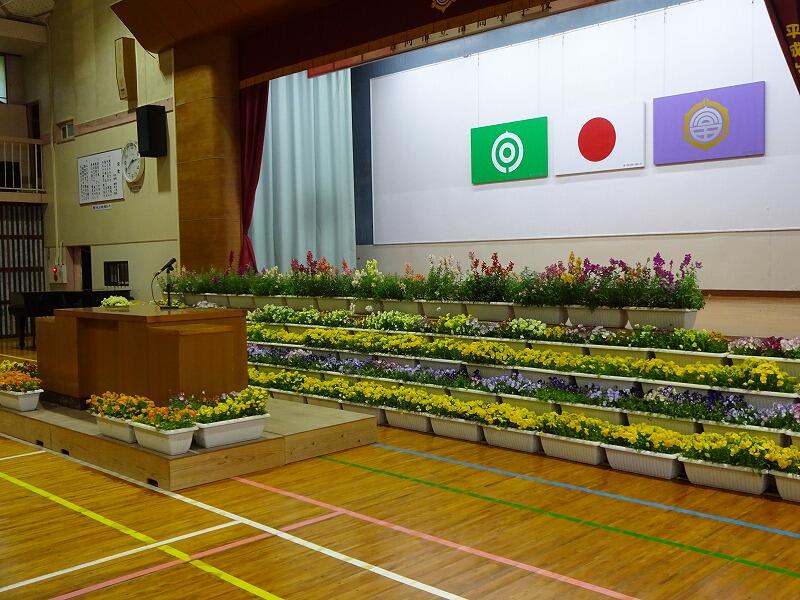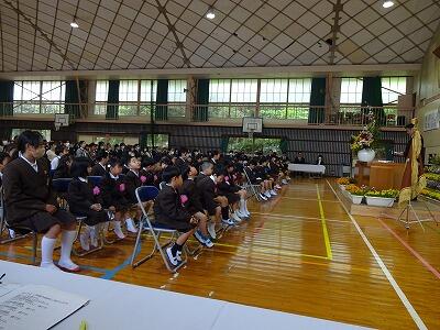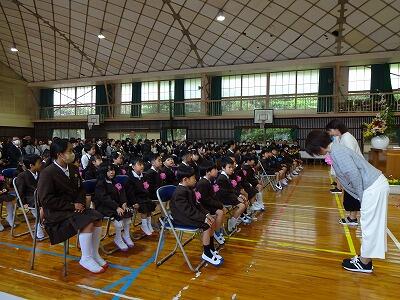 4月11日(木)本日は市内の中学校、小中一貫校(中)の入学式でした。日向中学校の入学式に出席させていただきましたが、落ち着きのある雰囲気の中にとても温かみが感じられる式でした。新入生、在校生の皆さんの態度がすばらしかったです。本校は明日が入学式、5校時に5・6年生が式場づくりなどの準備をてきぱきと進めてくれました。さすが、高学年でした。明日、花いっぱいの式場に65名の新入生を迎えます。