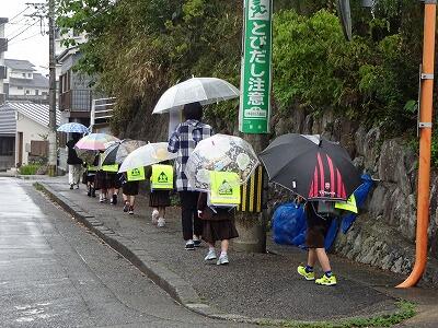 4月15日(月)新しい1週間のスタートです。朝から雨がぱらつくあいにくの天気でしたが、1年生も上級生たちと元気に登校してきました。各クラスの担任の先生との授業が始まるとともに、今日から給食もスタートしました。初めてのことばかりでしたが、先生のお話を聞きながらチャレンジしていました。下校の時間は一番雨が降っていて大変でしたが、コースごとに1列に並んで先生に見守られながら帰ってきました。よくがんばりました。