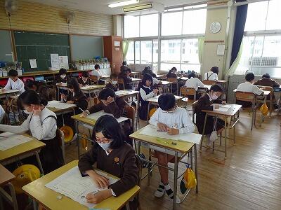 4月18日(木)6年生は全国学力テストに挑戦しました。2校時は国語、3校時は算数で、普段の単元テストとは違い問題と解答用紙が分かれているテストに2時間連続で取り組みました。どちらの教科も問題には多くの文字、絵図、表、グラフがあり、それらの情報を読み取りながら問題を解決していきます。どのクラスも真剣に集中して取り組んでいるのが伝わってきました。