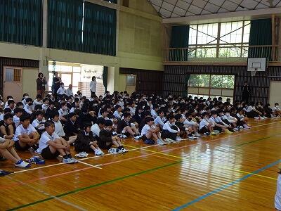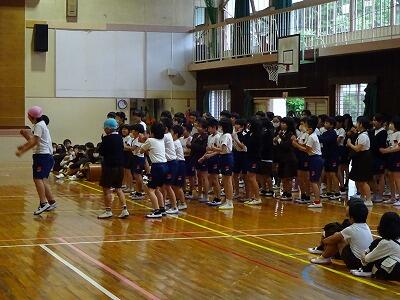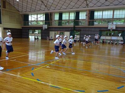 2校時、4年生は体育館で体力テストに取り組んでいました。今日は「シャトルラン」に挑戦、走る時に流れる曲のテンポがだんだん上がっていく中、苦しくてもあきらめずに走り切ろうとがんばる姿がすばらしかったです。