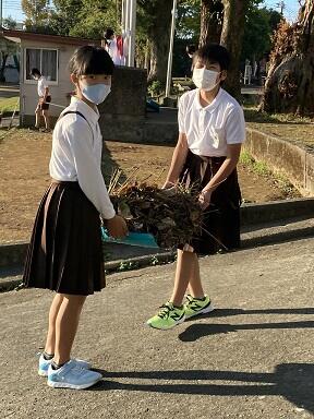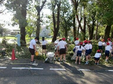 本校でも運動場にある屋外放送塔の屋根が大破したり、希望の森の木の幹や枝がたくさん折れていたりなど多くの被害が出ました。それらを学校職員はもちろん、子ども達、放課後は保護者の方々まで片付けを手伝っていただきました。本当にありがとうございました。