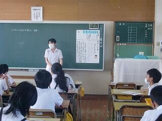 先生の卵として大学1年生が職場体験のように小中学校を3日間訪れるスクールトライアルという事業があります。9月20日から3日間、その一環として宮崎国際大学の1年生(本校出身の学生)が本校に来ています。6年生のクラスを中心に、いろいろな授業を見たり、昼休みを子どもと一緒に遊んだりして過ごしています。