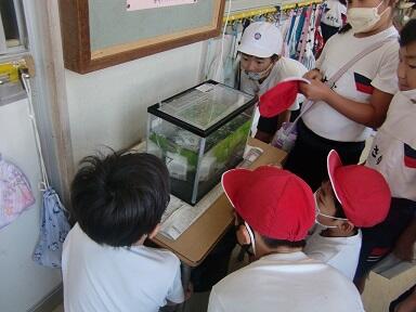 朝学校に登校してきた子ども達は、「わあっ透き通っていてすごいね。」「かわいいね」など大はしゃぎでした。