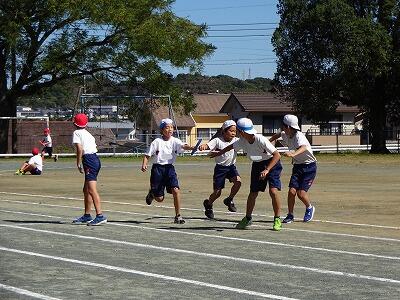 10月9日(水)1~4校時、運動会予行練習を行いました。少し強い風がふいていましたが、秋晴れの気持ちのいいお天気、子どもたちは元気いっぱい体を動かしていました。開・閉会式の内容を確認したり、各プログラムは入退場を中心にリハーサルをしたりしました。どの団もリーダーを中心にてきぱきと動き、応援の声も運動場に響き渡っていました。残り11日、各学年、もっといいものに仕上げてていってくれることと思います。