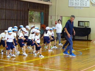 9月12日(水)2校時、1年生は体育館で運動会の練習に取り組んでいました。ひょっとこ夏祭りの"てんてこてん"でもお世話になった地域の方を先生にお招きして、ひょっとこ踊りを教えていただきました。最初はぎこちなかった足の運びも、終わり頃には音楽に乗って上手にできるようになりました。このひょっとこ踊りで運動会での1年生の出番がまた盛り上がりそうです。