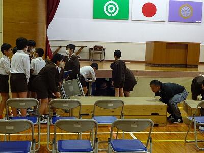 入学式終了後の最後の片付けは5年生が担当してくれました。担任の先生方の指示に従って、てきぱきと動いてくれました。