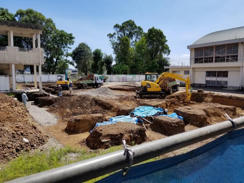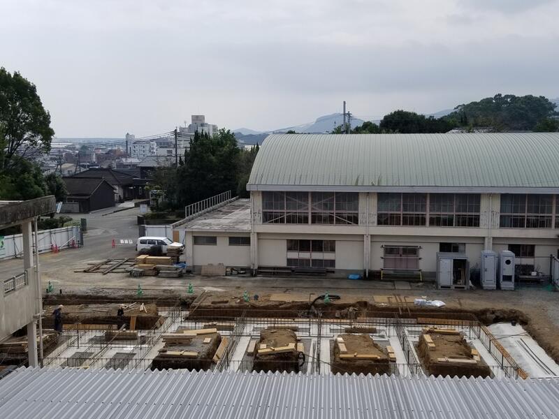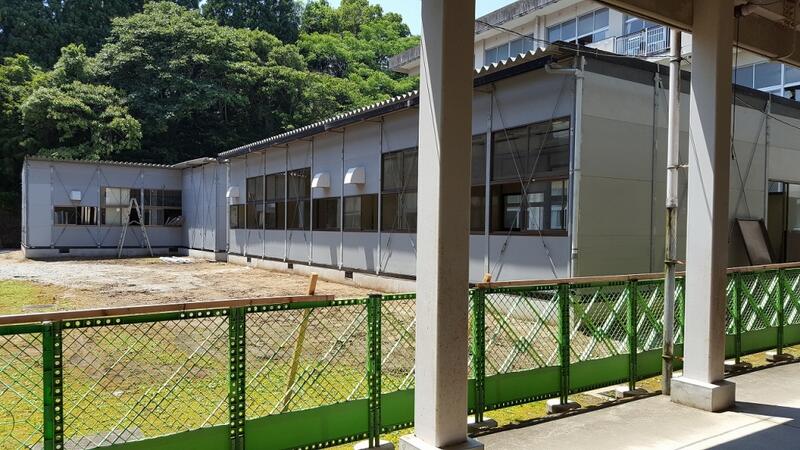 校長室や事務室は、プレハブ棟に移転しました。場所は、トップページをご覧ください。