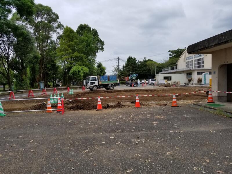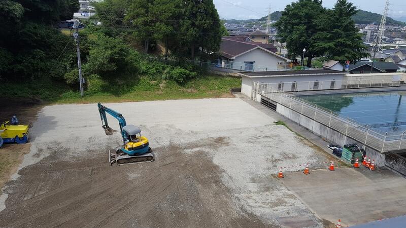 管理棟建替えに伴い、図工室跡地が整備され、7月中旬から北側駐車場になります。