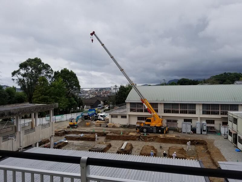 また、管理棟が新築されるまでのプレハブ棟が中庭に建設されました。