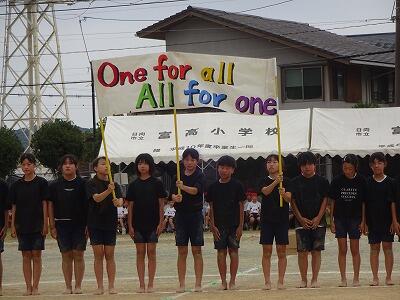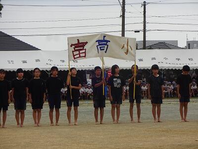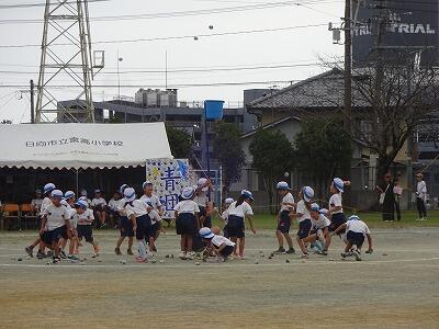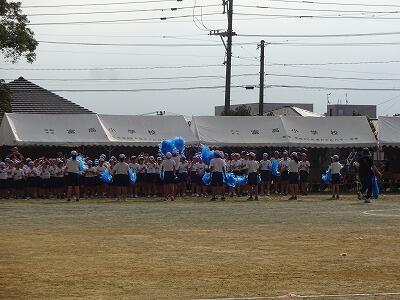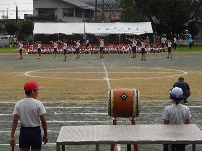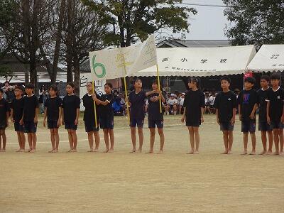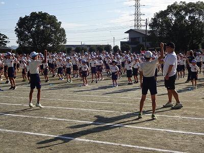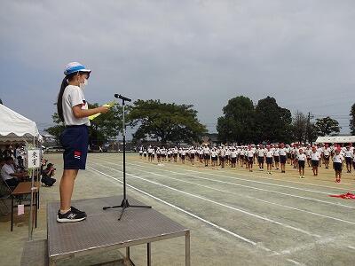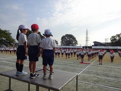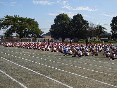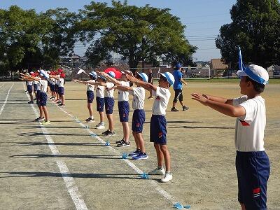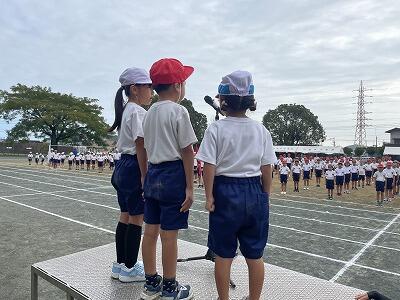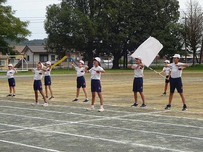 10月1日(水)1校時、1回目の全校体育をしました。1~6年生が運動場に集まって、運動会開会式、エール交換の練習をしました。まだまだ暑さを感じる中でしたが、子どもたちは元気に取り組んでいました。