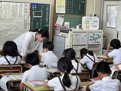 10月24日(金)は、北部教育事務所、日向市教育委員会の先生方をお迎えしての「学校訪問」でした。午前中2~4校時は全学年の参観授業、子どもたちが元気に授業に取り組んでいる様子を見ていただきました。給食後の5校時は1年1組、3年3組、6年2組において研究授業を行い、それをもとにその後の学年部別研究会で「ICTの効果的な活用」について協議を深めることができました。