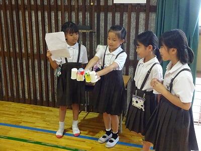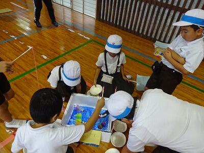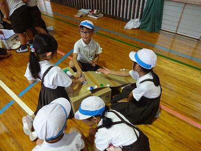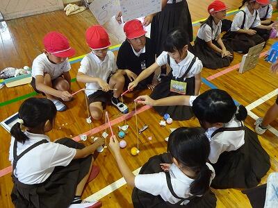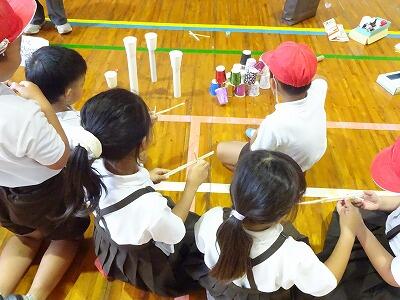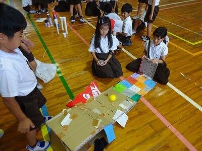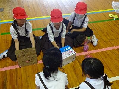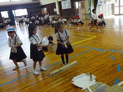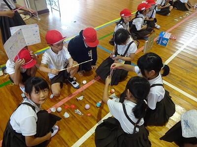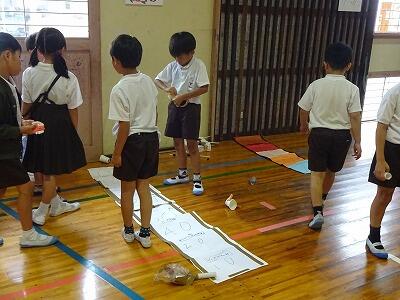 10月10日(金)4・5校時、体育館で1・2年生合同「おもちゃまつり」が行われていました。2年生が生活科の時間で作ったいろいろなおもちゃで、1年生が楽しそうに遊んでいました。アイデアいっぱいのおもちゃがたくさんありました。2年生がやさしく1年生の世話をする様子も見られました。