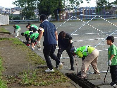 10月12日(日)午前8時からPTA奉仕作業が行われました。3連休中日にかかわらず、たくさんの保護者の皆様が参加してくださいました。子どもたちも手伝ってくれて、親子の協力のもと、作業が進む様子も見られました。刈った草の片付けや運動場側溝の泥上げなど大変な作業がたくさんありましたが、保護者の方のおかげで校内がとてもきれいになりました。参加していただいた保護者の皆様、ありがとうございました。
