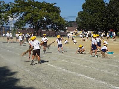 10月17日(金)13:45から、19日に開催される秋季運動会の準備作業を行いました。前半は運動場の清掃、整地を5・6年生が行いました。PTA役員、PTA保体部の皆さんもロープ張りや掲示等の作業を手伝ってくださいました。ご協力ありがとうございました。コースのラインもきれいに引かれて、あとは運動会当日を待つだけです。